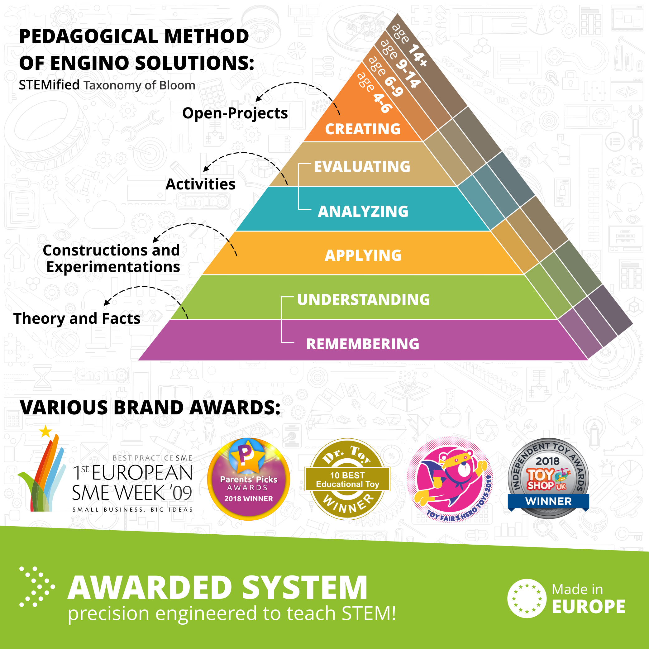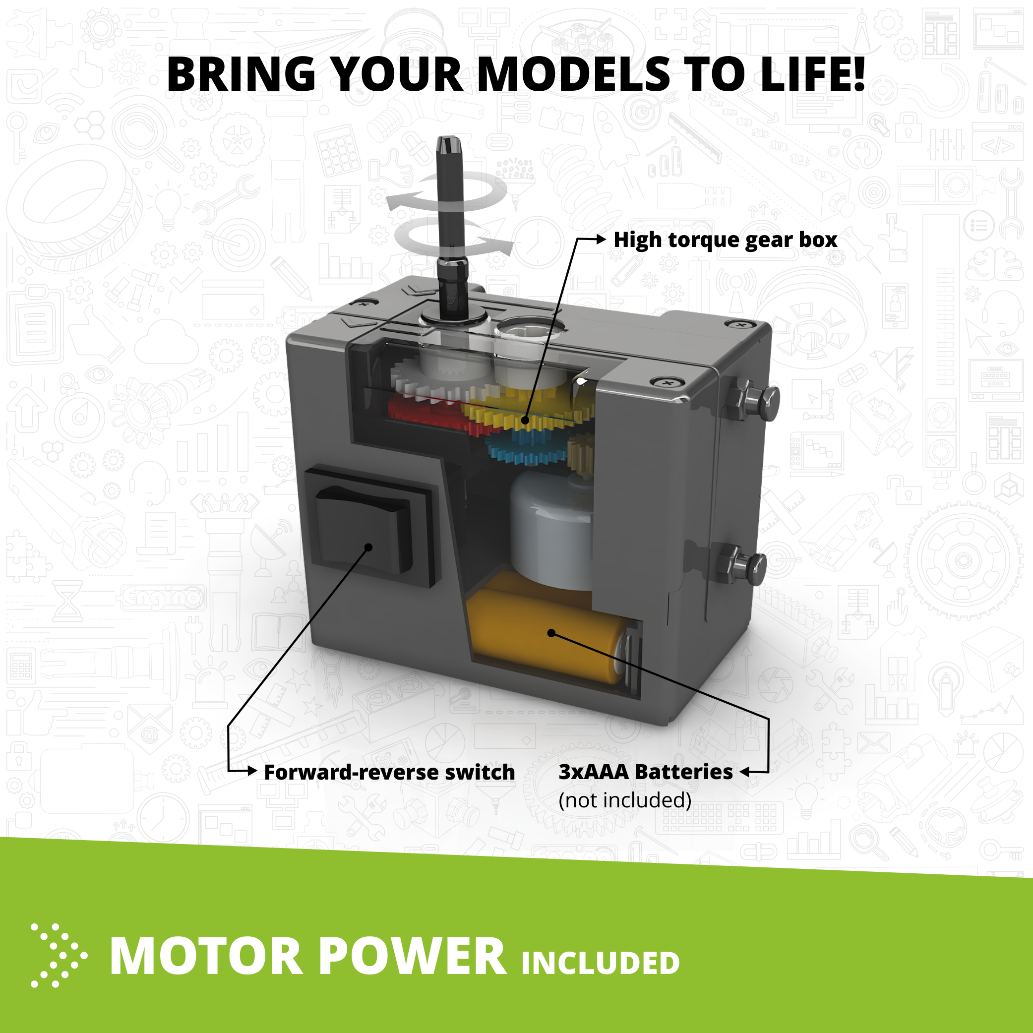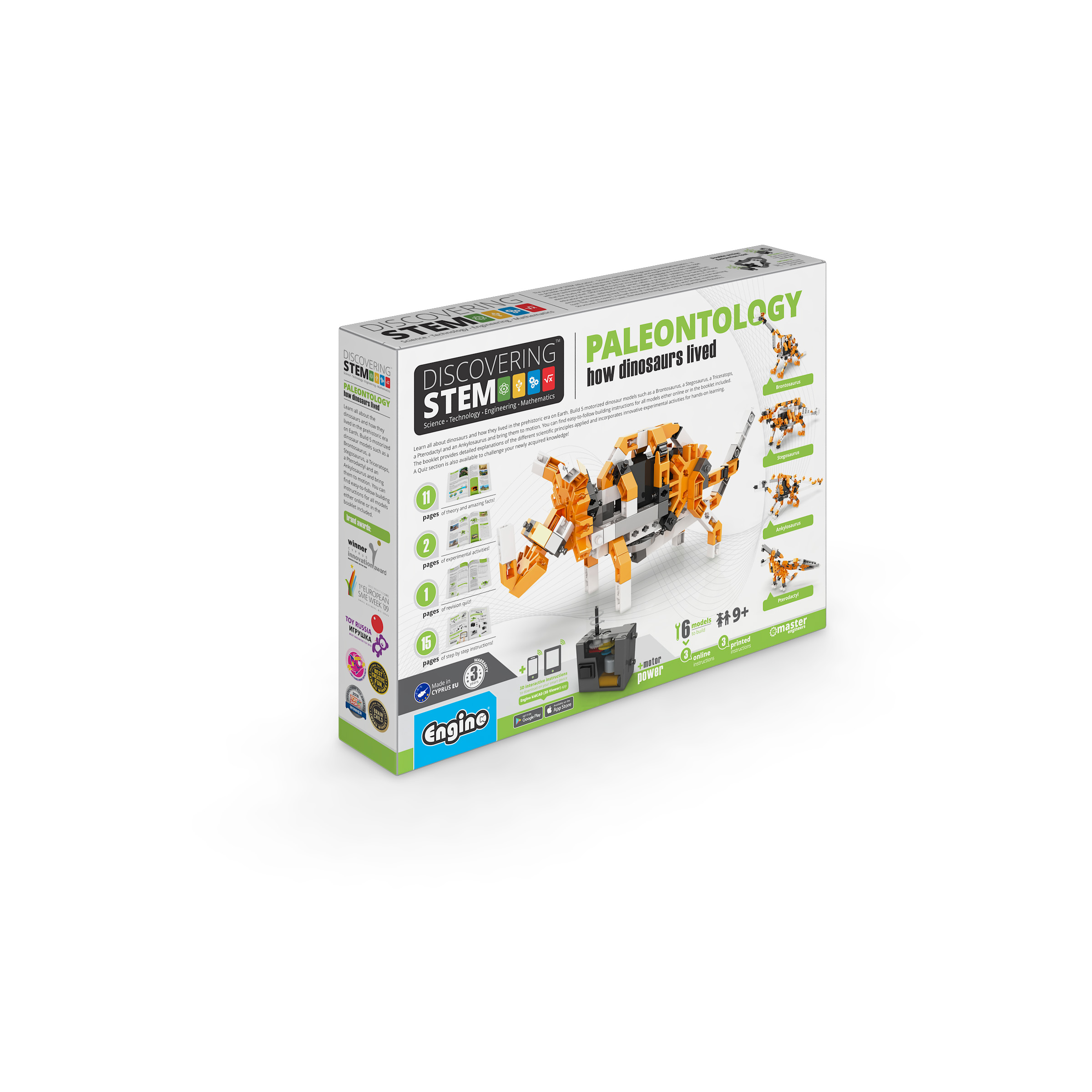 Learn all about the dinosaurs and how they lived in the prehistoric era on Earth. Build 5 motorized dinosaur models such as a brontosaurus, a stegosaurus, a triceratops, a pterodactyl and an ankylosaurus and bring the to motion. You can find easy-to-follow building instructions for all models either online or in the booklet included. The booklet provides detailed explanations of the different scientific principles applied and incorporates innovative experimental activities for hands-on learning. A Quiz section is also available to challenge your newly acquired knowledge!